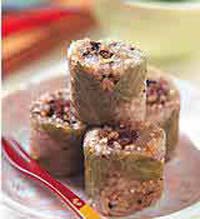 材料:茶梅10顆圓糯米600公克五榖粒300公克梅汁1/2碗新鮮茶葉適量