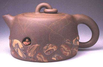 “陽(yáng)羨(即宜興)瓷壺自明季始盛,上者與金玉等價(jià)”,說(shuō)的就是陶器中的佼佼者——宜興紫砂茶具。紫砂壺早在北宋初期就已崛起,明代大為流行。其里外都不敷釉,采用當(dāng)?shù)氐淖夏唷⒓t泥、團(tuán)山泥摶制焙燒而成。由于成陶火溫高,燒結(jié)密致,胎質(zhì)細(xì)膩,既不滲漏,又有肉眼看不見(jiàn)的氣孔,且傳熱不快,不致?tīng)C手;若熱天盛茶,不易酸餿;即使冷熱劇變,也不會(huì)破裂 。...