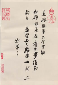 “襄啟,暑熱不及通謁,所苦想已平復(fù)。日夕風(fēng)日酷煩,無處可避。人生韁鎖如此,可嘆可嘆。精茶數(shù)片,不一一,襄上。公謹左右……”。