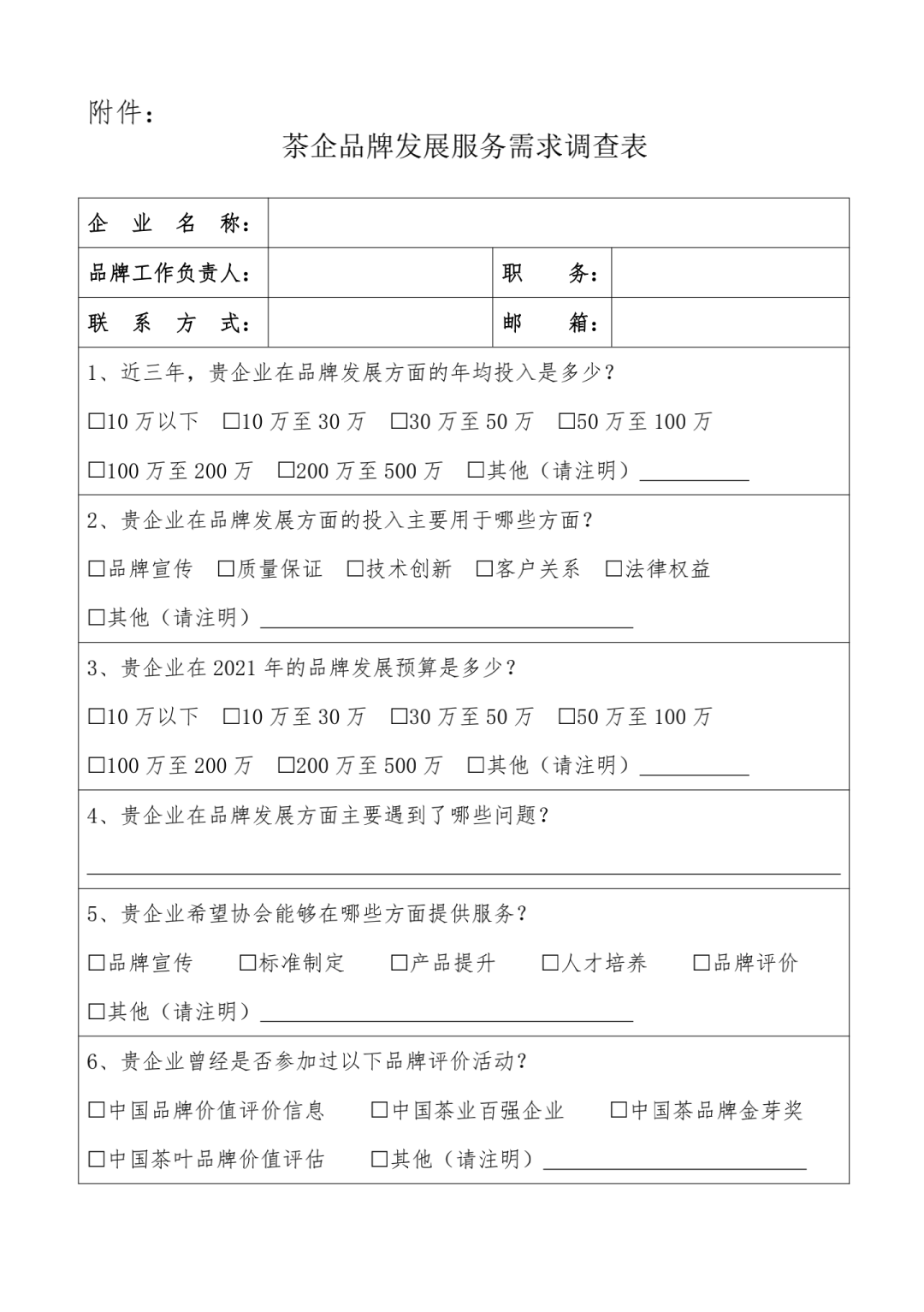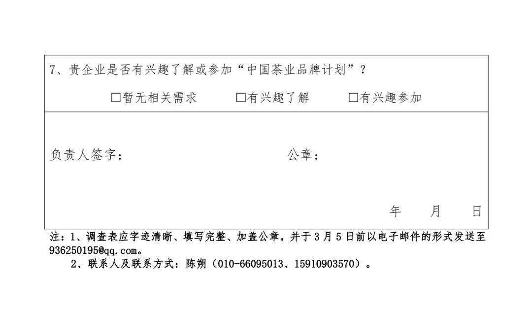 關于開展茶企品牌發(fā)展服務需求調(diào)查的通知