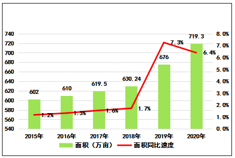 圖1   2015-2020年云南省茶園總面積趨勢(shì)圖