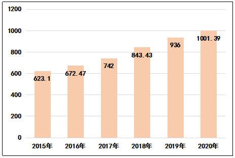 圖9  2015-2020年云南茶農(nóng)來(lái)自茶產(chǎn)業(yè)收入趨勢(shì)圖