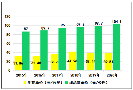 圖6   2015-2020年云南毛茶、成品茶單價(jià)對(duì)比圖