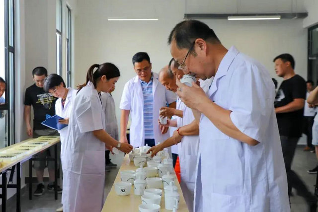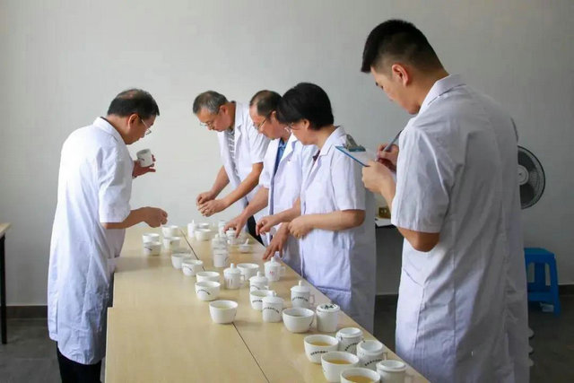 評外形、鑒湯色、聞香氣、品滋味、看葉底……斗茶賽現(xiàn)場,8位審評專家揉捏嗅聞,細看細品,專注評審參賽茶樣,根據茶樣的外形、香氣、湯色、滋味和葉底五個方面進行評分,將五個分數(shù)相加,從高到低設置獎項,并對獲獎茶樣進行質量安全檢測,評選出各個茶類的茶王一名,金獎兩名,銀獎三名。