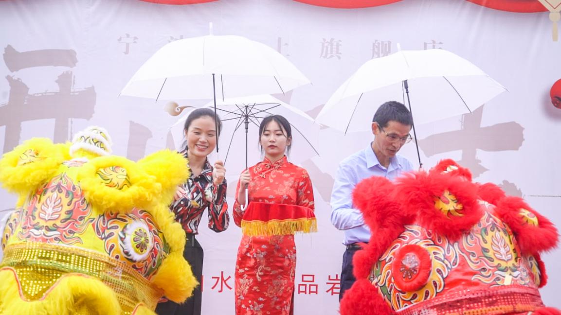 秋雨瀟瀟,巖茶幽幽, 幽香拂面,紫氣兆祥。“巖上”品牌寧波店大門(mén)口花籃簇?fù)?、人頭攢動(dòng);臺(tái)上紅黃雙獅舞動(dòng)、雙人點(diǎn)睛。幾百位“巖上”品牌茶愛(ài)好者絡(luò)繹不絕,現(xiàn)場(chǎng)人流如潮,1至3層的“巖上”品牌店里的茶客摩肩接踵。