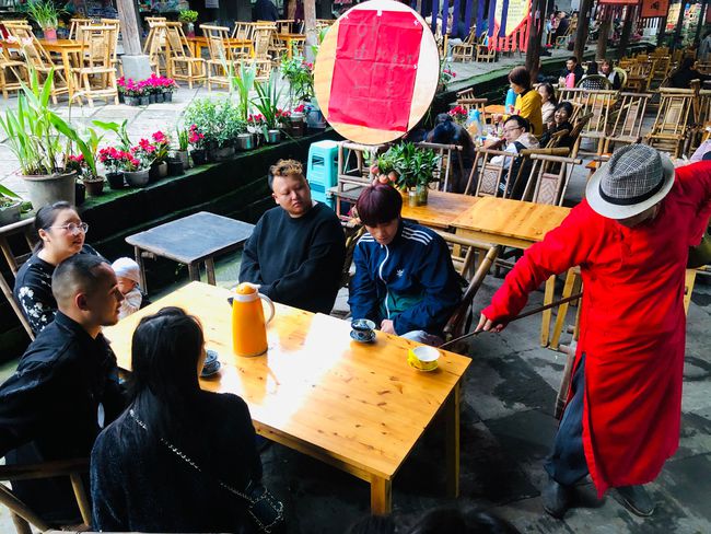 老周的生活,從一杯蓋碗茶開(kāi)始,喝一口茶,跟客人擺會(huì)龍門(mén)陣,張家長(zhǎng)李家短,可以消磨一天的時(shí)光。上過(guò)央視,經(jīng)常接受電視、報(bào)紙采訪(fǎng)的老周,已經(jīng)成了古鎮(zhèn)的“網(wǎng)紅茶倌”。不少游客慕名到他的茶館來(lái),喝杯蓋碗茶,給他拍照、寫(xiě)生,聽(tīng)他講古鎮(zhèn)的前世今生。